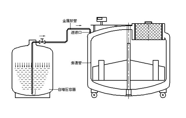 補(bǔ)給罐與液氮儲(chǔ)存罐之間采用法蘭真空軟管柔性連接.